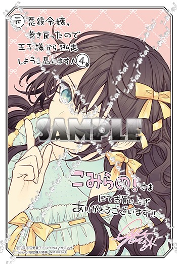 元悪役令嬢、巻き戻ったので王子様から逃走しようと思います!(4) 特典:イラストカード 原作: 辺野夏子 著: 宙百 発売: マイクロマガジン社 レーベル: ライドコミックス 発売日: 2025/01/31 ドミニクの兄・ファビアン第一王子の誕生会に出席したルルフィーナ。 嫌な空気が漂う中、どう立ち回るのか…!? ★こみらの!限定特典は「イラストカード」です! ぜひ、ゲットしてくださいね♪ Tweet Related Posts Q研 (1) → ギャル嫁の秘密 (4) → オタクに優しいギャルはいない!? (12) → 元戦闘用奴隷ですが、助けてくれた竜人は番だそうです。 (2) → Comments are closed. Back to Top ↑ おすすめ 2026/03/23発売☆ 『るすばん猫きなこ(1)』 著:今日マチ子 (講談社 モーニング KC) ★こみらの!参加書店では「A6ペーパー」付! <>新着情報> 2026-03-19 NEW! Q研 (1) 2026-03-12 王者の盤狂わせ ~ネット将棋の帝王、黄龍の王者と対峙する~ 2026-03-12 ギャル嫁の秘密 (4) 2026-03-12 オタクに優しいギャルはいない!? (12) 2026-03-12 元戦闘用奴隷ですが、助けてくれた竜人は番だそうです。 (2) EVENT info 当サイトで紹介している商品及び関連情報の著作権は各商品の権利者に帰属します。Copyright © こみらの!プロジェクト Back to Top ↑